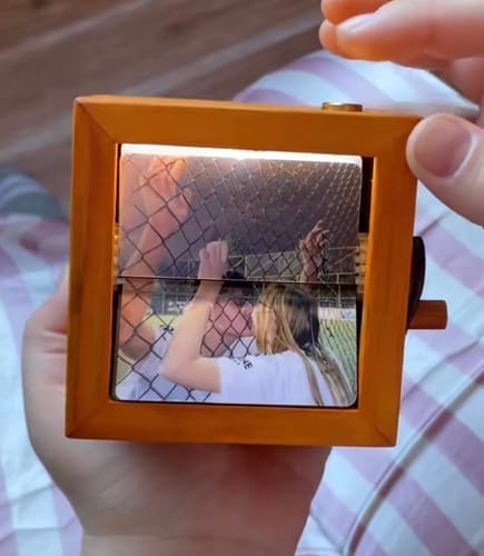 Absolutely. You can test the crank, watch the photos animate, and reset it before wrapping. You’ll probably want to see it one last time — it’s that good.