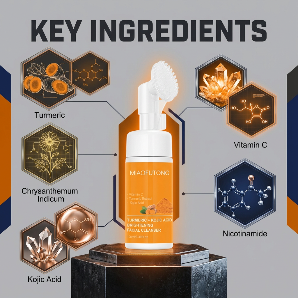 | Brightening & dark spot support | Turmeric, Kojic Acid, Vitamin C, Niacinamide | Basic cleansing ingredients, limited brightening |